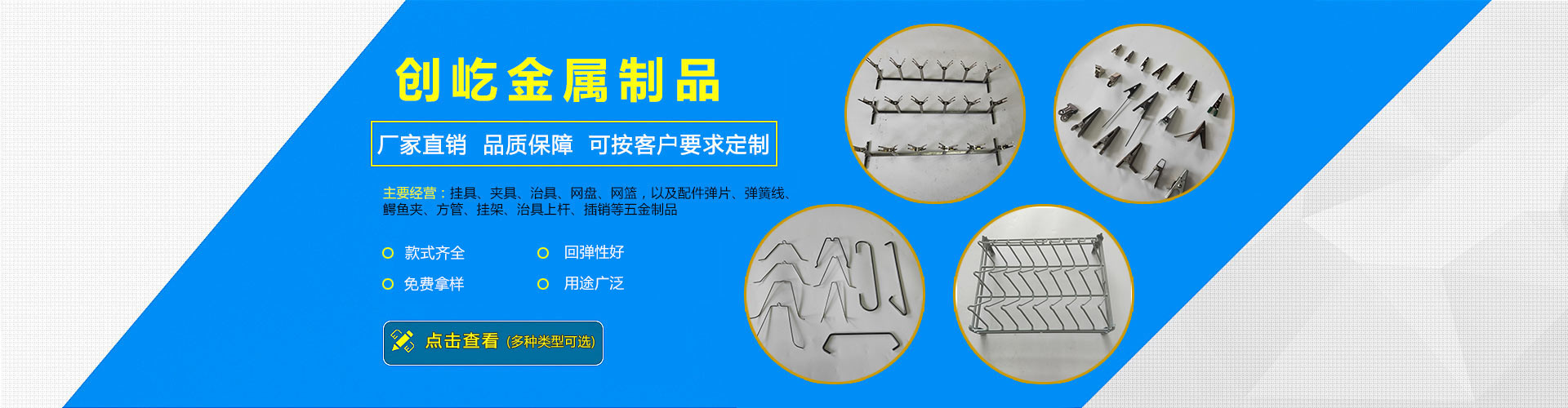 東莞市創屹金屬制品有限公司專業設計生產銷售:掛具、夾具、治具、網盤、網籃,以及配件彈片、彈簧線、鱷魚夾、方管、掛架、治具上桿、插銷等五金制品的廠家。廣泛應用于國內外噴涂、噴油、噴漆、UV、水轉印、電鍍、真空鍍、電子、五金、塑膠等行業。